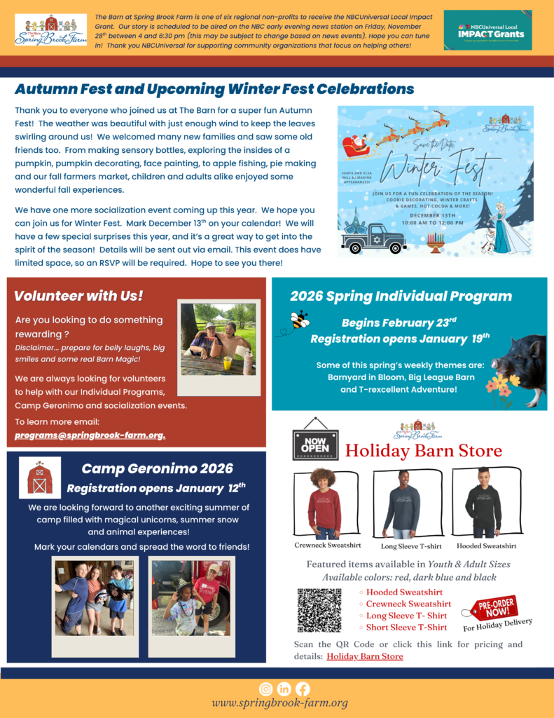 Check back here throughout the year to read up on all The Barn happenings, including upcoming events, testimonials, program updates, photos of our beloved animals and more!
